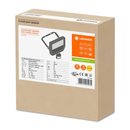 Ledvance LED Floodlight Sensor GEN 3 White 20W 2200lm 100D - 830 Warm White | IP65 - Motion and Light Sensor - Symmetrical
