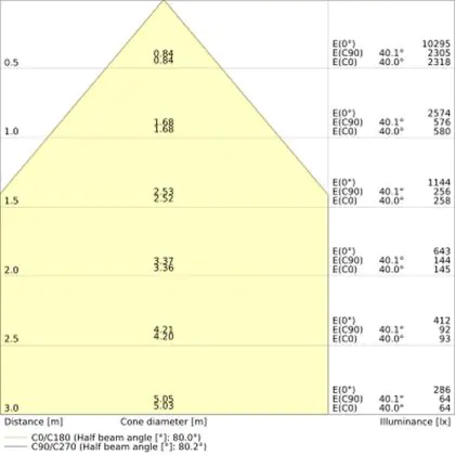 The colour code is a combination of colour rendering (CRI) and light colour (Kelvin). The first number indicates the colour rendering (1 = very poor colour rendering, 9 = maximum colour fastness). The second and third number contains the light colour. Example: the colour code 830 consists of good colour rendering (8) and warm white light (3000K).