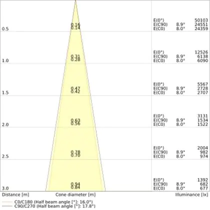 The colour code is a combination of colour rendering (CRI) and light colour (Kelvin). The first number indicates the colour rendering (1 = very poor colour rendering, 9 = maximum colour fastness). The second and third number contains the light colour. Example: the colour code 830 consists of good colour rendering (8) and warm white light (3000K). |