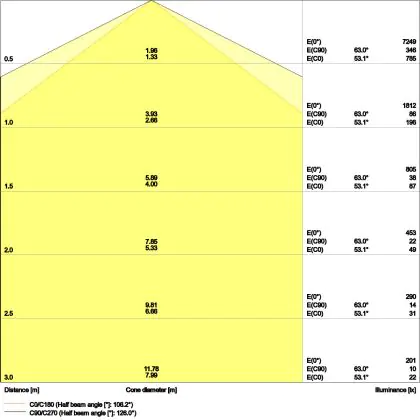 The colour code is a combination of colour rendering (CRI) and light colour (Kelvin). The first number indicates the colour rendering (1 = very poor colour rendering, 9 = maximum colour fastness). The second and third number contains the light colour. Example: the colour code 830 consists of good colour rendering (8) and warm white light (3000K). |