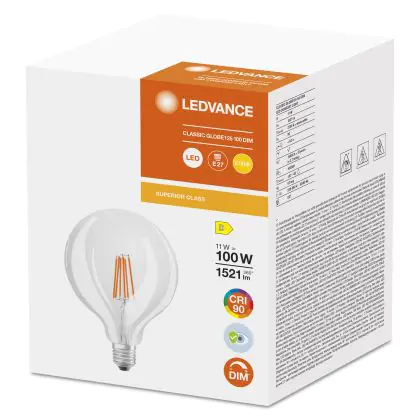 Ledvance Superior Classic LED E27 Globe Filament Clear 125mm 11W 125mm 1521lm - 927 Extra Warm White | Best Colour Rendering