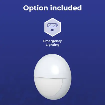 Lighting with a built-in emergency lighting unit (battery) continues to burn for a certain time if the power fails. |