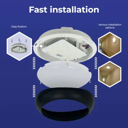 Lighting with a built-in emergency lighting unit (battery) continues to burn for a certain time if the power fails. |